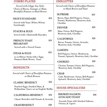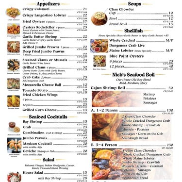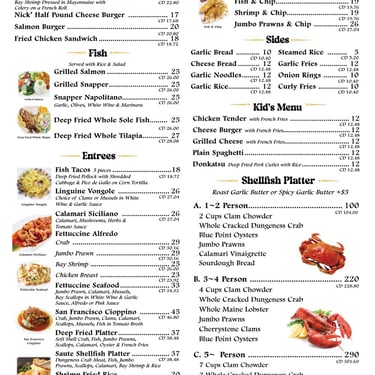 Consuming raw or undercooked seafood and shellfish may increase your risk of foodborne illness. A 4% surcharge is applied to all debit/credit card transactions.